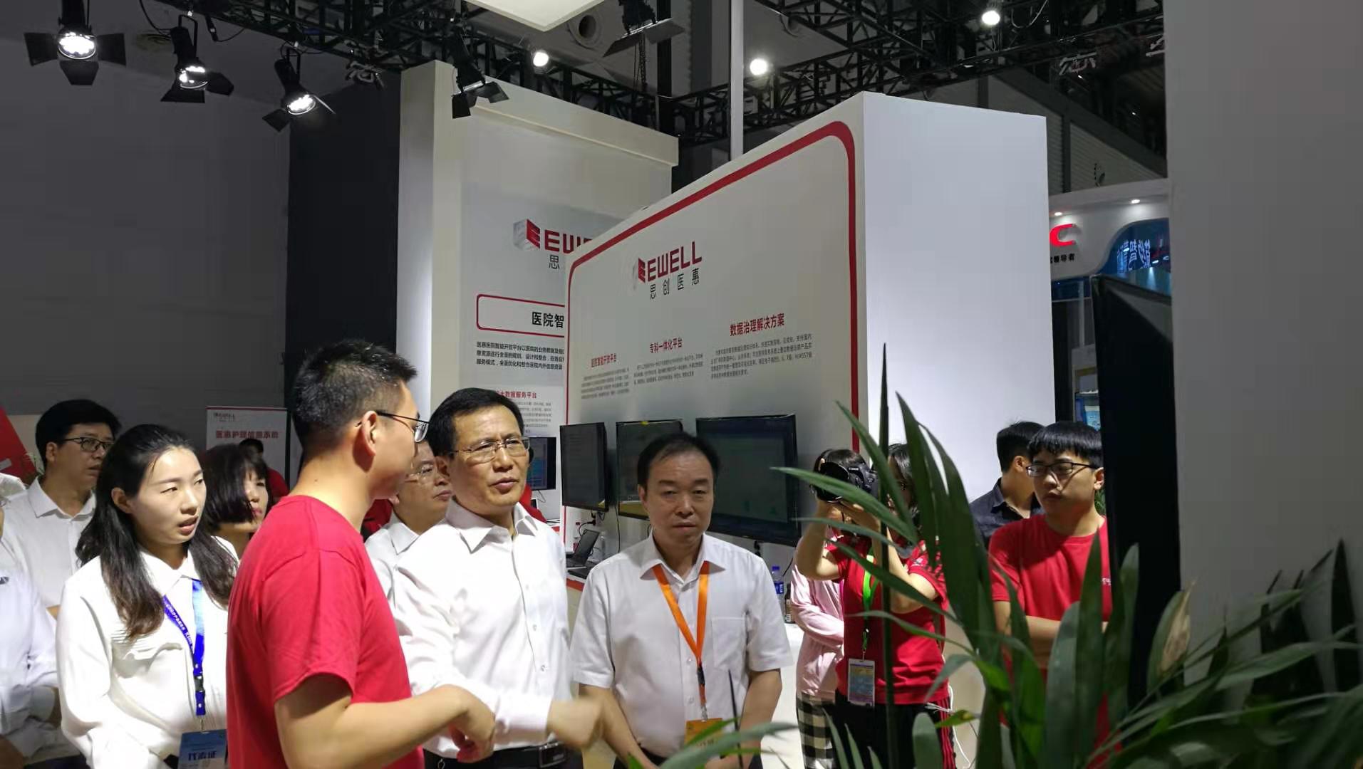 国家卫健委统计信息中心主任张学高在思创医惠副总裁周燕儿的陪同下参观医惠展位